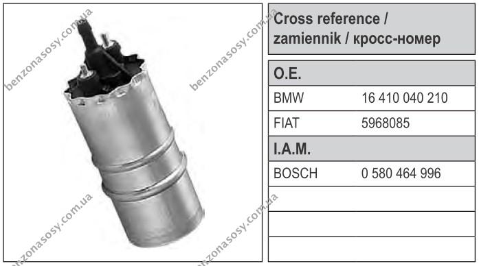 MAM00074 4 Bar 120 lh ALFA ROMEO, BMW, FIAT, LANCIA O.E. BMW 16 410 040 210, FIAT 5968085, I.A.M. BOSCH 0 580 464 996