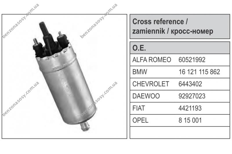 10.00€При помощи нашего он-лайн интернет-каталога вы сможете быстро и легко подобрать, узнать стоимость (цена) , наличие и купить с доставкой новый топливный насос или заказать бу(б у; б/у), ремонт, реставрацию: електробензонасос, паливний насос, электро-бензонасосов, электро бензонасоса, насос подкачки топлива, насос подкачки, дизельные насосы, дизельный электробензонасос подкачки в сборе, бензонасос низкого давления, бензонасос на карбюратор, моторчик (мотор) насоса, сеточку, эбн низкого давления, топливный насос, погружной бензонасос, топливный насос погружной, бензонасос вкладыш, электробензонасос, электробензонасос реставрированый, электробензонасос в сборе, бензиновый мотор, модуль, колбу или вставка бензонасоса на любой легковой или грузовой автомобиль, комбайн, трактор, погрузчик, мотоцикл, снегоход, скутер, катер, а также другие виды мото и водного транспорта, дорожной, строительной, карьерной и сельскохозяйственной техники. У нас можно подобрать и купить бензонасос на такие виды иномарок: Acura, Alfa Romeo, Aston Martin, Audi, Bentley, BMW, Brilliance, Buick, Cadillac, Chana, Chery, Chevrolet, Chrysler, Citroen, Dacia, Daewoo, DAF, Daihatsu, Dodge, Ferrari, Fiat, Ford, Ford USA, Foton, Geely, GMC, Great Wall, Hafei, Honda, Hummer, Hyundai, Infiniti, Isuzu, JAC, Jaguar, Jeep, Kia, Lancia, Land Rover, Lexus, Lincoln, Maserati, Maybach, Mazda, Mercedes, MG, MINI, Mitsubishi, Nissan, Opel, Peugeot, Pontiac, Porsche, Proton, Renault, Rolls-Royce, Rover, Saab, Seat, Skoda, Smart, Ssangyong, Subaru, Suzuki, Toyota, Volkswagen, Volvo, ВАЗ, ГАЗ, ЗАЗ, Москвич, УАЗ. Мы отправим Ваш заказ в любой город Украины: "Симферополь, Винница, Луцк, Днепропетровск, Донецк, Житомир, Ужгород, Запорожье, Ивано-Франковск, Киев, Кировоград, Луганск, Львов, Николаев, Одесса, Полтава, Ровно, Сумы, Тернополь, Харьков, Херсон, Хмельницкий, Черкассы, Чернигов, Черновцы, Севастополь итд "