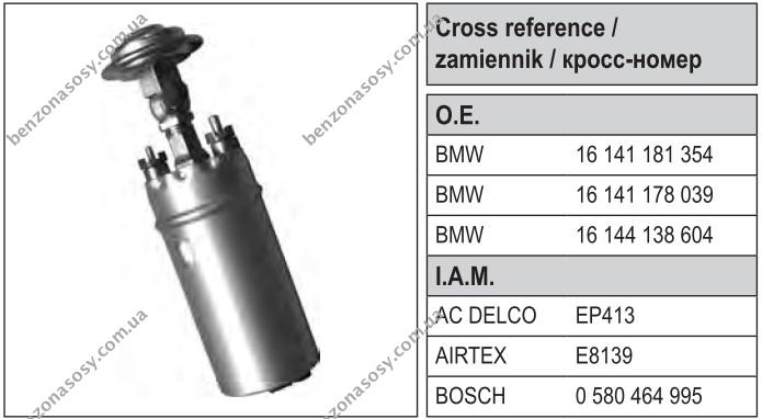 MAM00073 3 Bar 140 lh BMW O.E. BMW 16 141 181 354, BMW 16 141 178 039, BMW 16 144 138 604, I.A.M. AC DELCO EP413, AIRTEX E8139, BOSCH 0 580 464 995