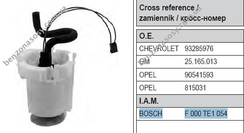 MAM00003M 3 Bar 85 l. CHEVROLET 93285976 GM 25.165.013 OPEL 90541593 OPEL 815031 BOSCH F 000 TE1 054
