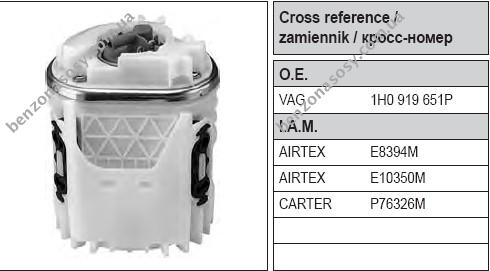 MAM00005M 3 Bar 90 l,.h FORD, SEAT, VW VAG 1H0 919 651P AIRTEX E8394M AIRTEX E10350M CARTER P76326M